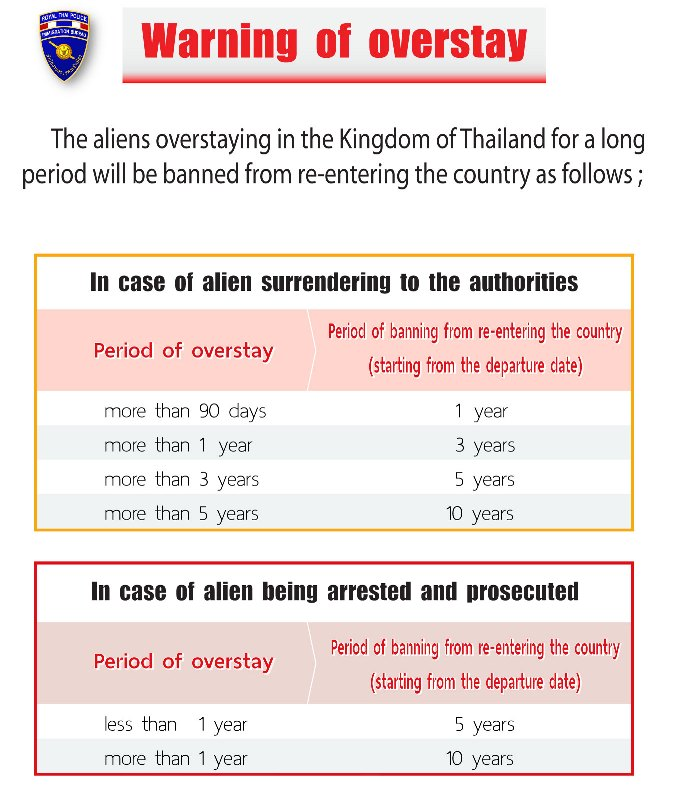 If you have overstayed for an extended period of time, you will be banned from re-entering the country. See the tables below for more information regarding overstays: